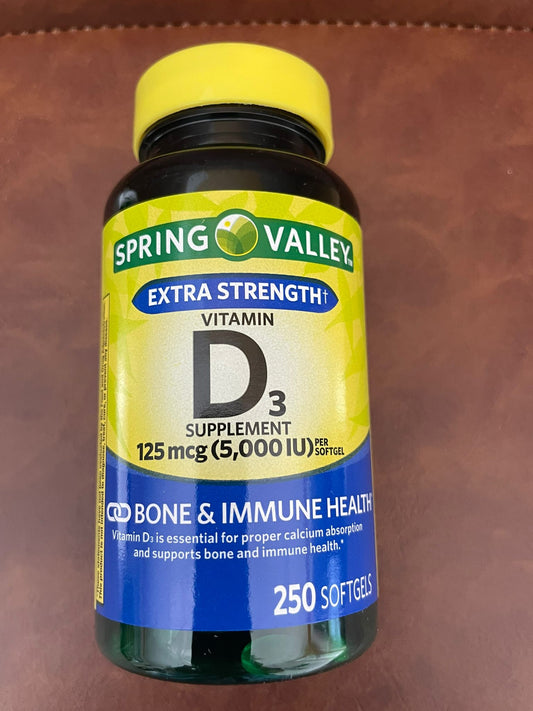 Spring Valley Extra Strength Vitamin D3 125 mcg (5,000 IU) – 250 Softgels