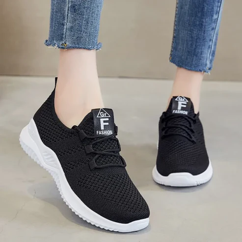 Lightweight Breathable Knit Running Sneakers – Black & White