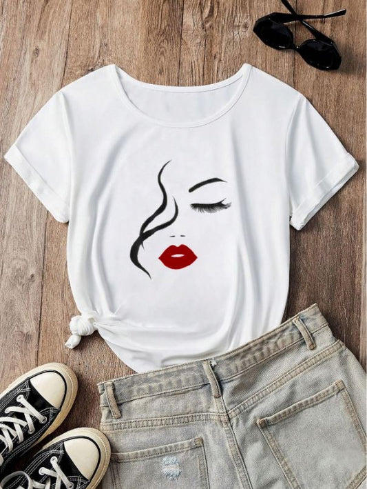 VaVaLuxe Portrait Printed Short Sleeve Oversized T-Shirt, Summer Casual Graphic Tees Women Tops